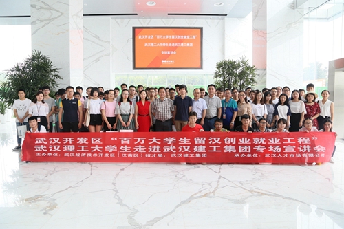 2018年6月22日,武漢開發(fā)區(qū)招才局攜手武漢人才市場有限公司,組織百名武漢理工大學生走進武漢建工集團大學生實習實訓基地現(xiàn)場觀摩。武漢開發(fā)區(qū)組織部副部長張濤,武漢人才市場有限公司總經(jīng)理肖艷、武漢建工集團股份有限公司總法律顧問李芊等領(lǐng)導出席了此次活動。